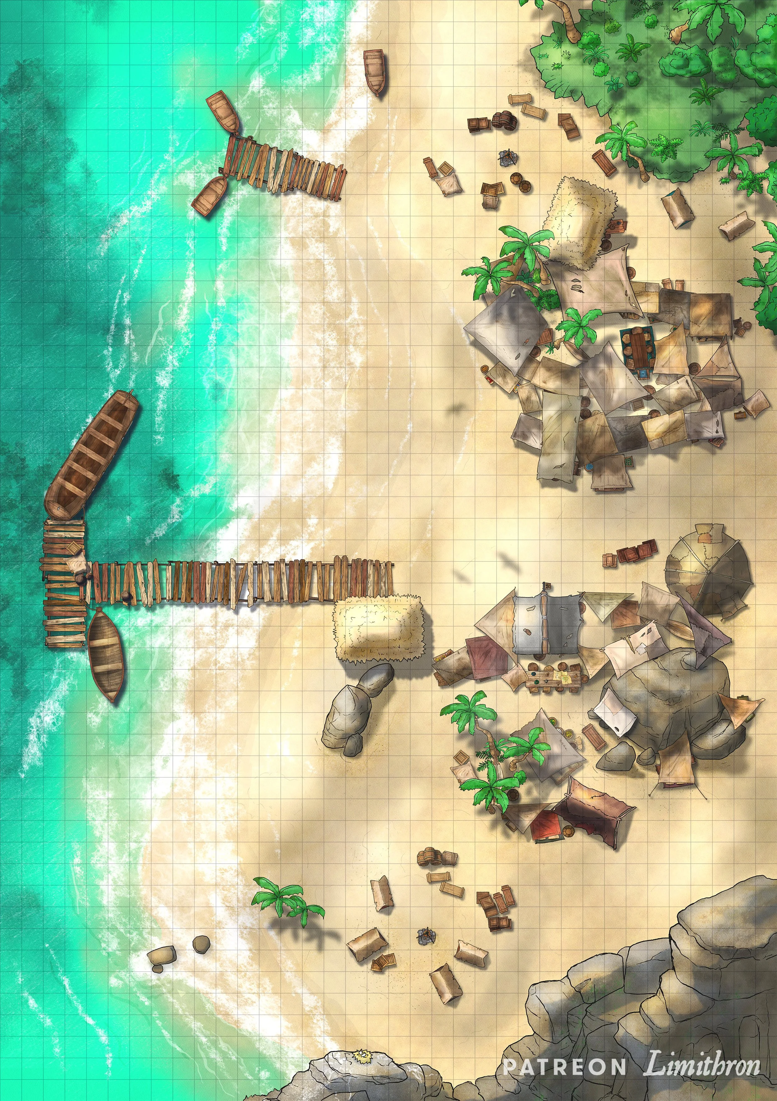 We’re quietly putting together some sort of mega-map, and the Shanty Town is its next piece. You can connect it to the beach map in the Starter Set, and to the Hangman's Beach map, and to the Hangman’s Jungle.